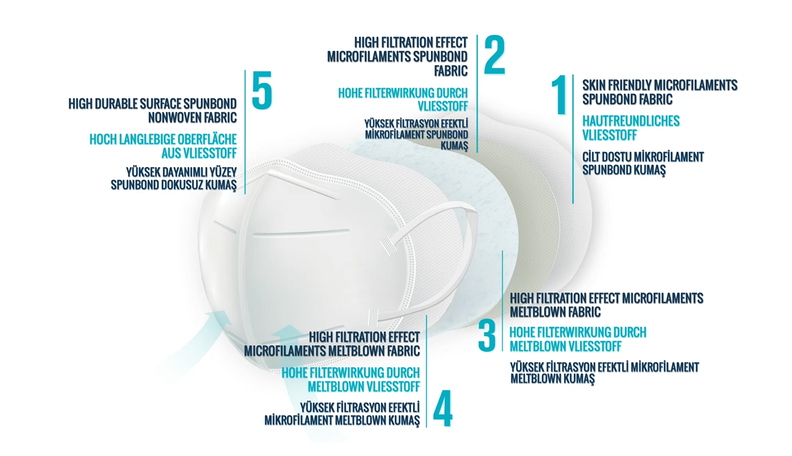 რესპირატორს აქვს ყურებზე გასაკეთებელლი რეზინის სამაგრი, რაც უზრუნველყოფ ნიღბის მჭიდროდ მორგებას.